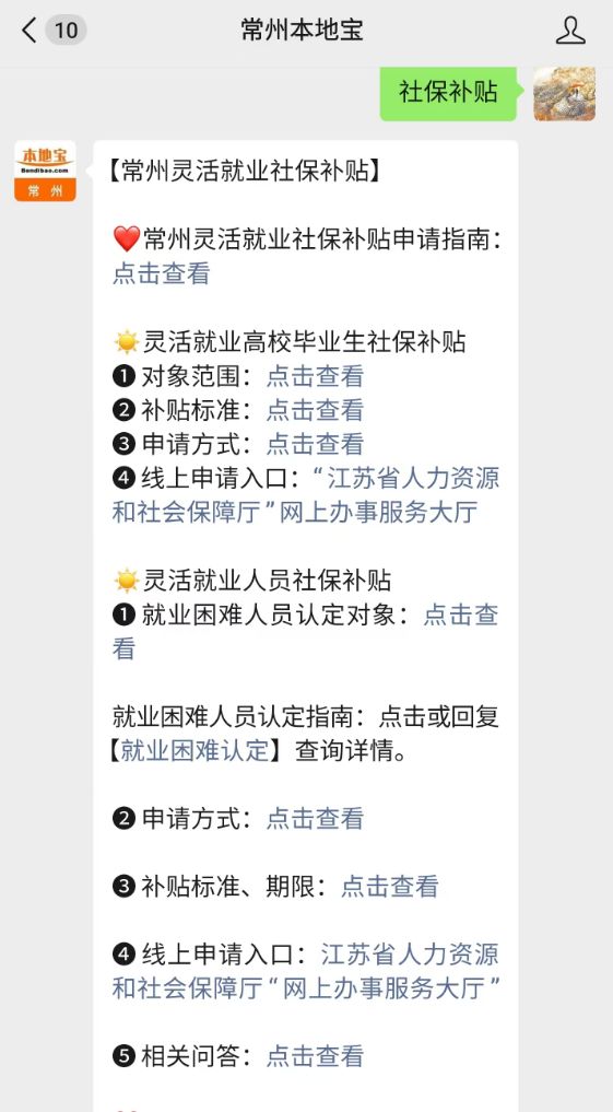 温馨提示:微信搜索【常州本地宝】公众号,关注后在对话框回复【社保补贴】可获2025常州灵活就业人员社保补贴政策、怎么申请、申请入口、申请对象、补贴标准、常州社保窗口地址、就业困难人员认定、高校毕业生社保补贴等信息。