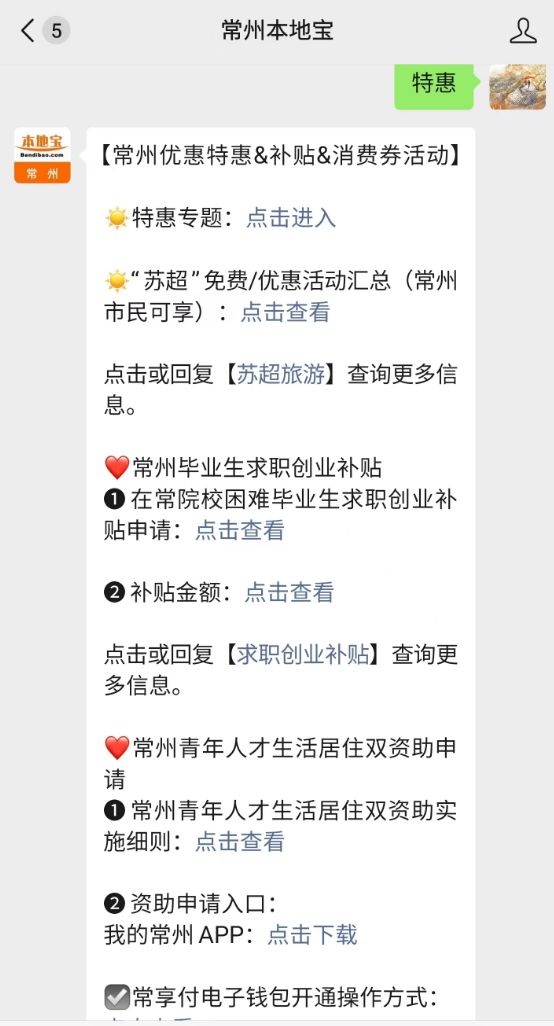温馨提示:微信搜索【常州本地宝】公众号,关注后在对话框回复【特惠】可获2025常州餐饮/生活特价优惠活动、常州消费券活动及领取指南、常州补贴政策及申领方式/入口、2025苏超旅游优惠活动等信息。